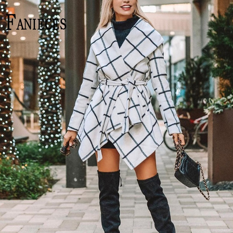Add an equestrian appeal to your cold weather wardrobe with this plaid women's wrap sweather. Asymmetrical hemline with coordinating belt gives is stunning paired with a tall boot. Falls below the waist for anyone looking for something that works well with your collection of leggings and skinny pants.