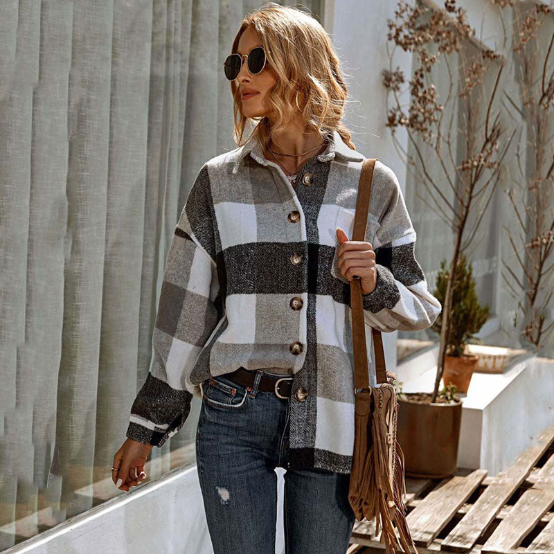 Cozy comfort gets an upgrade with this chic button front shacket. A structured shirt jacket with rustic plaid and elegant buttons down the front. A great piece that is retro and timeless.