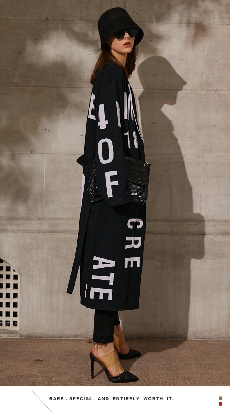 A long belted cardigan with lettering detail will bring an artsy vibe to your winter wardrobe. Removable belt you can use to cinch or lay loose for a more effortless edit. A great layering piece that's edgy, urban and elegant all in one.