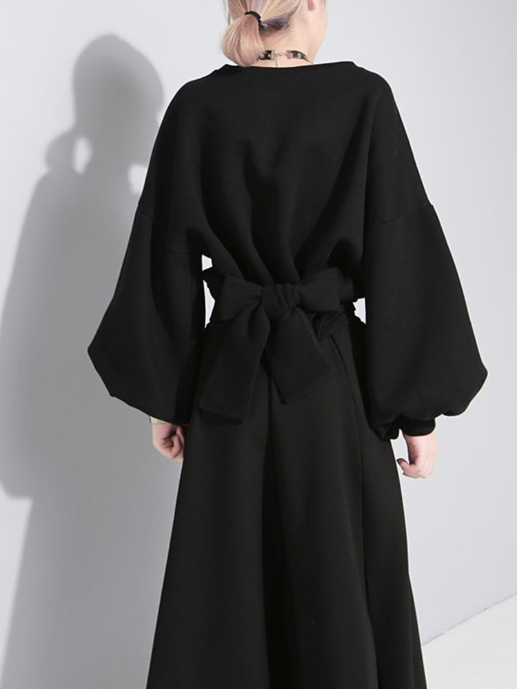 Gothic chic and victorian romance comes together in this gorgeous women's shirt. Bishop sleeves add drama to the classic crewneck shirt. Bow detail in the back is a grand surprise that can bring charm to any ensemble. Pair with a skirt and combat boots for a gothic edit. Wear it for after work drinks, wear it for a festive outing.
