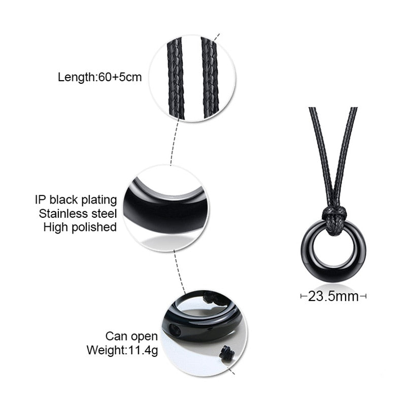 This necklace will add style and edge to any look. Sturdy rope knotted through open ring that is great to layer with other necklaces or alone. A look that will never go out of style.