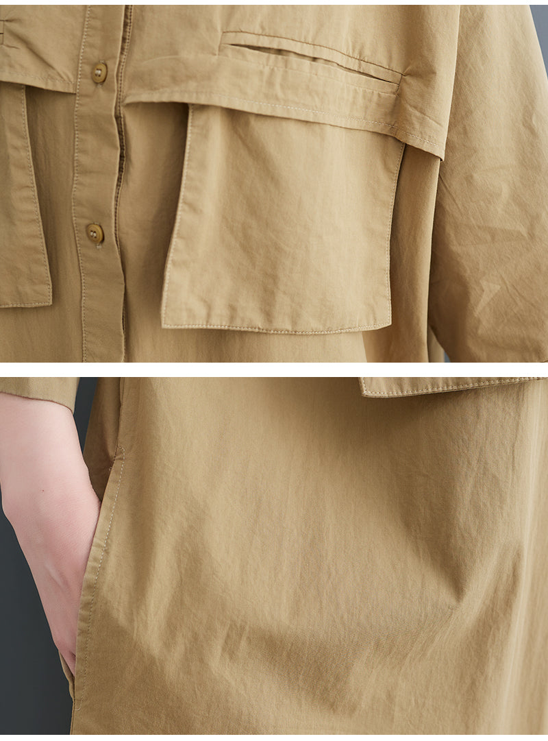 Downtown chic meets safari elegance in this relaxed fit shirt dress. Button front details with oversized front pockets for that classic safari look. Pair with some fun sneakers to give it that modern, city feel.