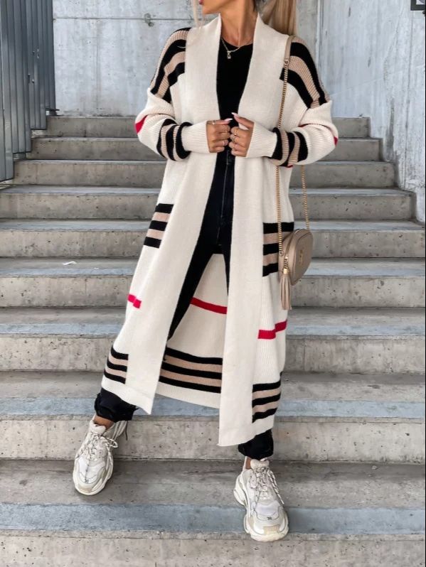 If you're looking for the perfect sweater for travel and weekend errands or excursions, look no further. This women's duster sweater is cozy, warm and a must-have for the winter season. Multi-color stripes throughout to give the classic look some added stule and dimension. Pair with a fun fashion sneaker and leggings and you're ready for takeoff!