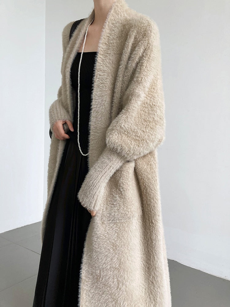 Super soft and fuzzy duster that will be your go-to for chilly winter days. Exaggerated cuffs add style and form to the classic women's sweater. A staple that will pair over dresses or any ensemble. Dress up with pumps or stay casual with your favorite fashion sneaker.